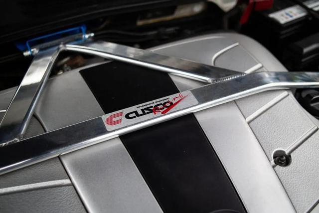 底盘升级了CUSCO的强化摆臂和撑杆,吊挂遴选Koni绞牙避震搭配前14K后10K弹簧;轮毂遴选18×9J的CST Hypers轮毂,搭配235/40R18的普利司通RE003轮胎。