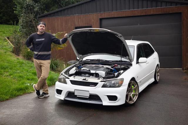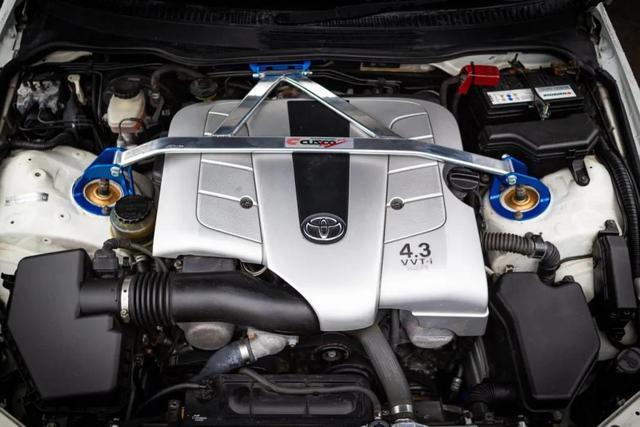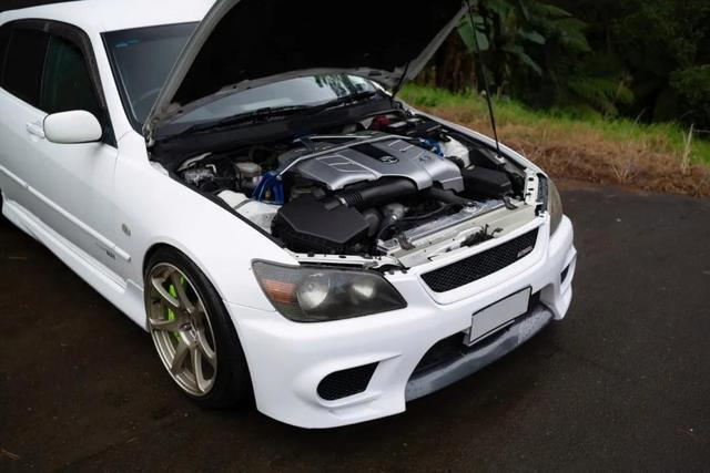 车主是改装店控制东谈主,何况还身兼漂移车手、D1NZ的首席裁判和时刻司理等责任,深受日本漂移文化影响,是以给与了这辆私有的Altezza GITA行为日常用车,正常2.0机器一经得志不了他对能源的需求,天然这车也有移植2JZ的案例,但毕竟2JZ对车头分量包袱太大,于是思到了LS430的3UZ-FE发动机。
