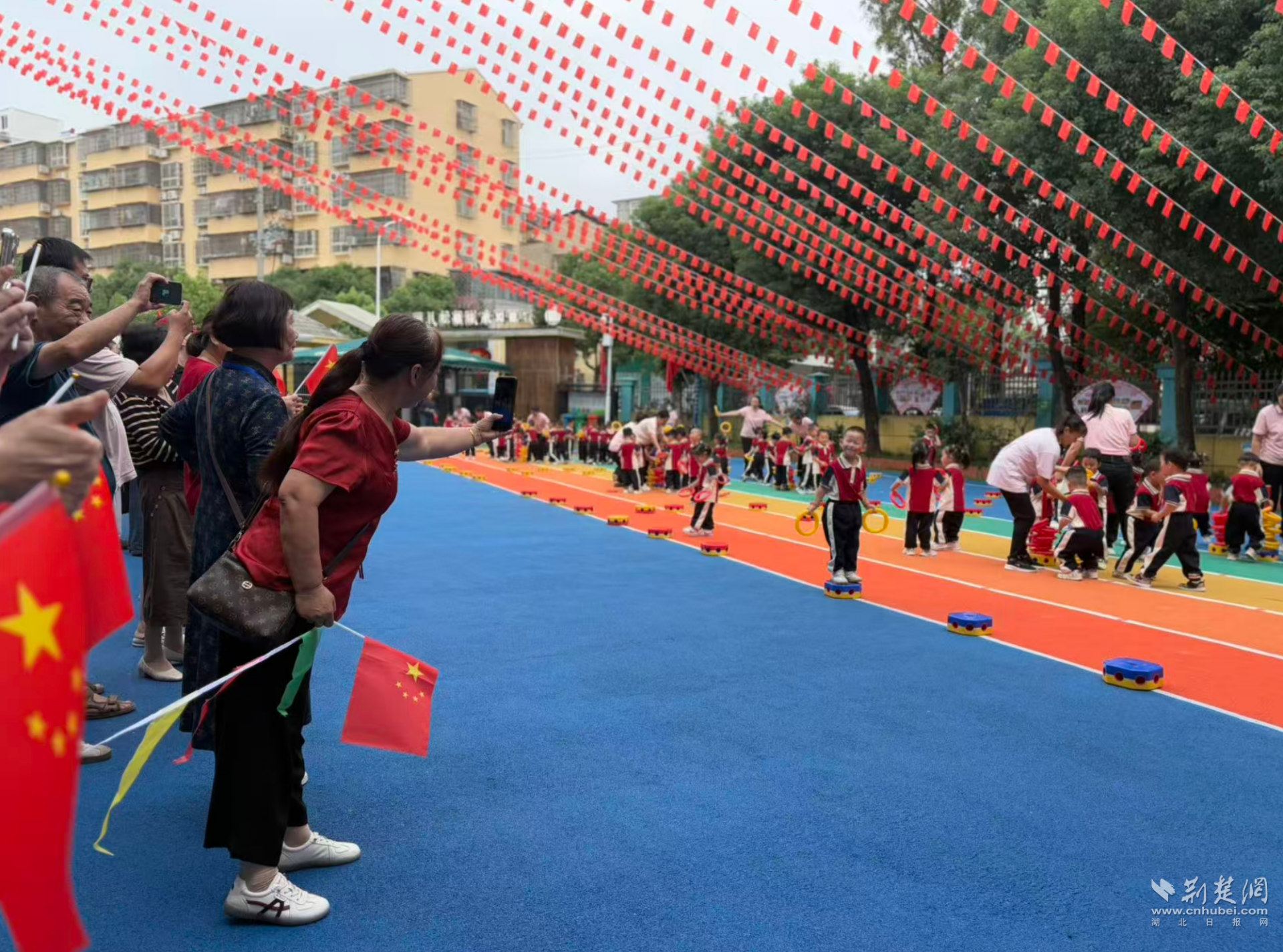 荆楚网(湖北日报网)讯(记者林杉 通信员周婕)9月28日,在国庆节驾临之际,江夏区东湖路幼儿园的操场上化作一派欢笑的海洋,一场“萌娃迎国庆 体操来献礼”方舟器械操比赛吵杂开展。行动滥觞,大班刘老诚一番形貌飘溢的动员,点火了全场小一又友的良善,“咱们也要争第一!”的稚嫩大喊声响彻校园,也拉开了这场童心献礼的序幕。