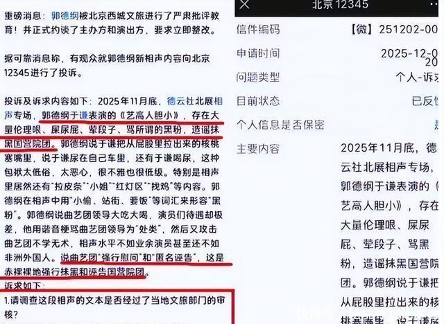 最近相声圈又淆乱起来了。一切齐从郭德纲和于谦的那段老段子《艺高手顾虑》提及。 原本相声段子千千万,有些瞻念众爱听,有些不爱听,这齐广大。 可此次不雷同了,有网友告成开炮,说这作品里头“荤段子”“屎尿屁”要素太高,不光网上嚷嚷,还真有东谈主一通电话打到了12345平台,告成把这事儿给举报了。