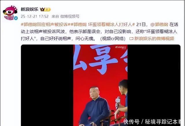 部分参考贵府: 郭德纲回报相声被投诉风浪:齐是扭曲,对我方没影响,义正辞严