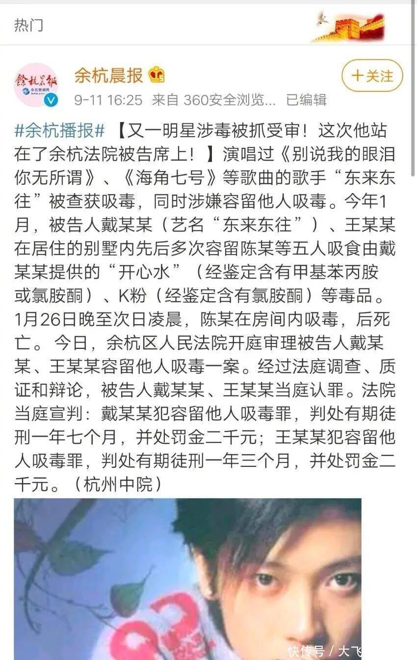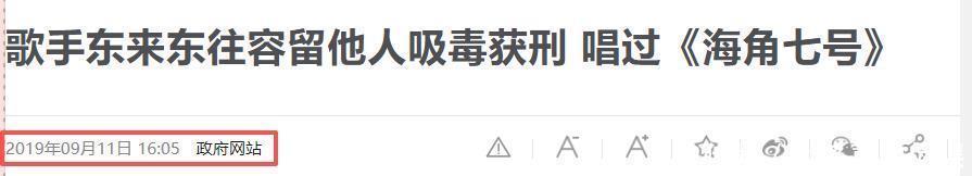 政府网站2019-09-11《歌手东来东往容留他东谈主吸毒获刑 唱过《天涯七号》》