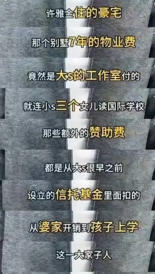 汪小菲这一年可没闲着。他请的讼师团队把大S名下的资金流向捋了个遍,一笔笔活水查得清皎洁白。这一查没关系,还真挖出了些让东说念主咂舌的事。比如许雅钧住的那栋豪宅,七年的物业费,果然是大S的职责室在付。再比如小S三个男儿上国外学校,每年的特别缓助款,是从大S早年设的信赖基金里扣的。这些钱,一扣等于很多年。你敢信?一个嫁入“权门”的妹妹,日子过得风表象光,背后的账单却全由姐姐沉默扛着。