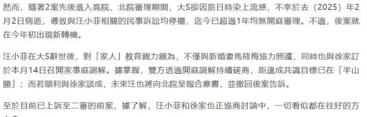 东说念主走了快一年,家里的事反而越闹越澄清。蓝本认为大S离世后风云会迟缓平息,没思到当前倒像是打开了临了一层窗户纸。汪小菲和徐家那儿终于要坐下来谈了,时刻定在本月14号欧洲杯体育,说是家庭和解,其实等于把以前那些没说清的钱、没算清的账,一桩桩摊开来讲。这事儿拖了一年多,讼事卡着开不了庭,当前总算动了。说是要“善罢赶走”,可谁心里齐明显,哪有的确谦虚的谈判,手里没点底牌,谁敢坐上这张桌子?