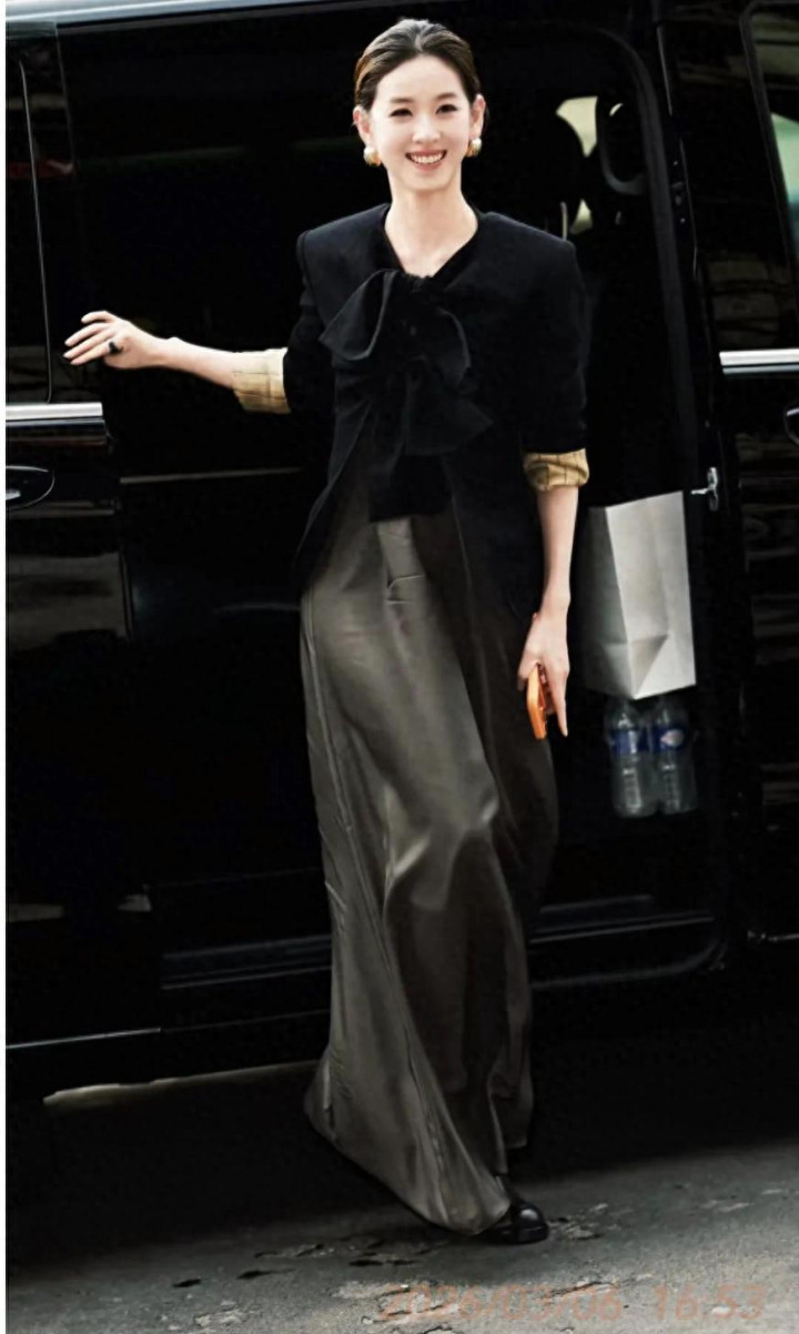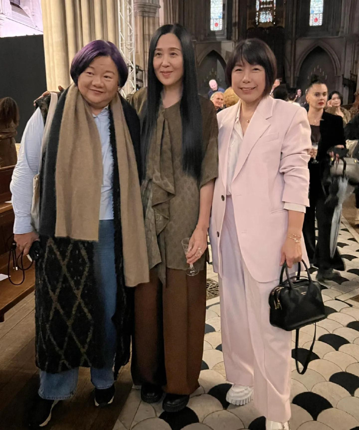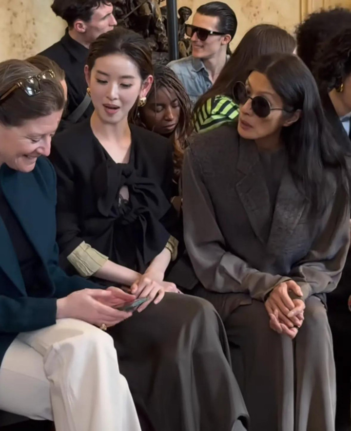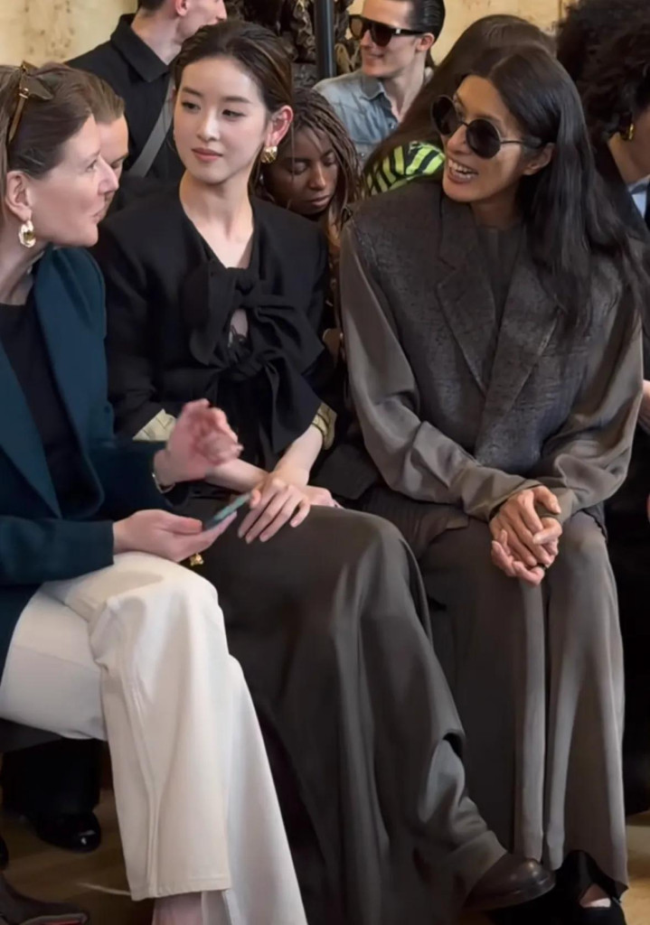 她现身头排看秀,位置超等好,一边是赓续出席先锋举止的贵妇,另一边公共相比纯熟是亚裔超模,纪梵希眷属的儿媳妇Suzi de Givenchy。