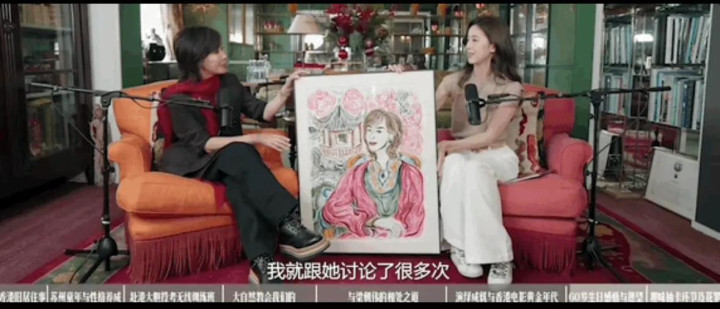 就像在章泽天采访刘嘉玲时,送给了刘嘉玲一幅画。即是某位画家的话,这亦然一种布局。