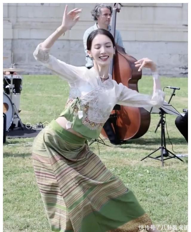 在法国的香波堡,金晨还给群众跳了一曲傣族舞,现场有葫芦丝的旋律,再加上金晨的精彩上演。