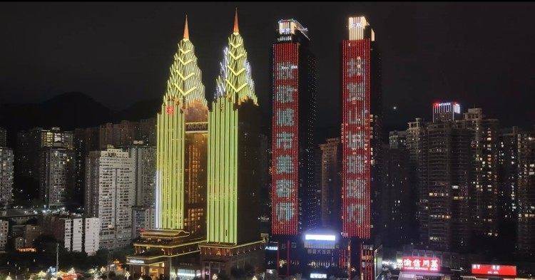 问候口号点亮山城的夜。主持方供图