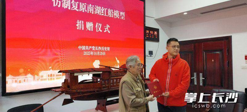 南湖红船模子找到属于我方的“家”“感谢王芳德先生及家东说念主把南湖红船模子捐给中国共产党长沙历史馆,咱们一定会妥善储藏与保存,把‘红船精神’长期传承下去。”29日下昼,彭亚欧代表该馆继承捐赠时如是示意。“我早就有这个念念法了,仅仅其时莫得来得及把船模作念出来。”王芳德示意,将南湖红船模子捐馈遗中国共产党长沙历史馆,这艘船模才算找到了我方的“家”。“咱们从《长沙晚报》的报说念中得知王芳德同道有利捐赠南湖红船模子。”中国共产党长沙历史馆文物保护部的魏聪告诉记者,为了不亏负王老的一派古道,他们赶快通过芙蓉北路街说念和凤亭社区筹办上王芳德,最终促成了这次捐赠。坐落于中国共产党长沙历史馆内的“净水塘22号”,是毛泽东和杨开慧婚后实在意旨上的第一个家,亦然中共湘区委员会的机关地点地,是毛泽东同道创重生计的发轫。“净水塘”和“南湖红船”不异,齐是中国创新的“红色摇篮”。“这是送给中国共产党长沙历史馆最佳的礼物。”彭亚欧示意,本年是“红船精神”建议20周年,这么的捐赠意旨不凡。王芳德本年75岁,是又名有着多年党龄的中共党员。“他时常在辖区给咱们宣讲中共党史和‘红船精神’。”芙蓉北路街说念凤亭社区关联负责东说念主告诉记者,老党员王芳德从未健无私方的初心折务,还时常给辖区未成年东说念主宣讲“湖湘船文化”,他还但愿建起一座具有一定例模的湖南船舶历史文化博物馆,让后东说念主更直不雅地了解湖湘船舶的历史文化。举报/反映