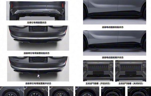 车身侧面线条融会,溜背缱绻强化通顺属性,配备传统机械式门把手,提供20-22英寸多规格轮辋及彩色卡钳可选,细节处可加装行李架、电动踏板等遮挡件。车尾相连式3D悬浮尾灯点亮辨识度拉满,下方配备牵引脱钩,呼应其牵引功能,具备2000公斤的牵引禀赋。尺寸上,车身长宽高鉴识为5100/1998/1780毫米,轴距为3069毫米,提供5座与2+2+2六座布局,比较极氪9X尺寸略紧凑,兼顾空间与城市操控纯真性。
