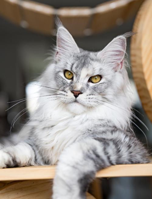 缅因猫是一种体型强大的猫咪品种,它们领有着浓密的毛发和迷东谈主的蓝色眼睛。