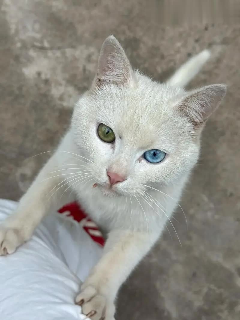 在这群来来且归的流浪客中,有一只异瞳小白猫最为极度——它是狸花猫带总结次数最多的,却亦然胆子最小的。