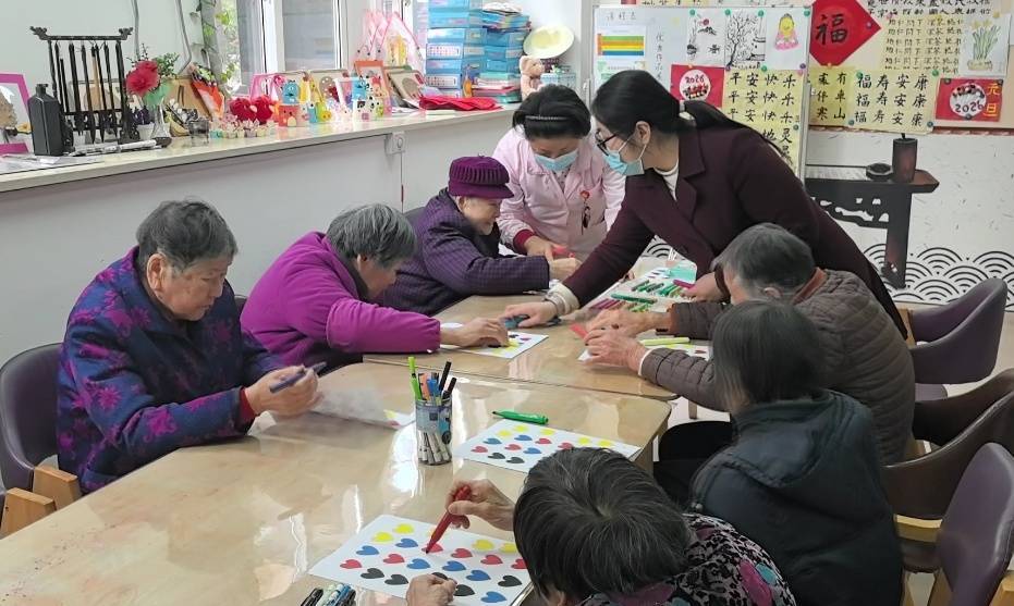 走进区社会福利院,院内喜庆的新年遮挡遍地可见,浓浓的年味扑面而来。看成室里,住养老东谈主在照看员的奉陪下开展手指操、绘图等娱乐看成,欢声笑语不休。