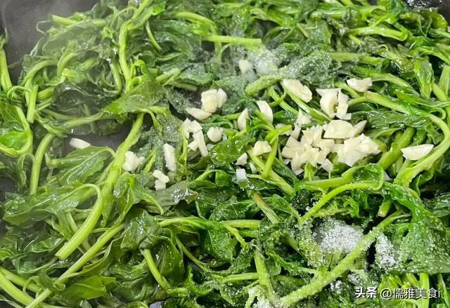 3. 加极少盐调味,快速翻拌均匀,立马关火出锅,鲜活爽口,吃的即是时令鲜味儿。