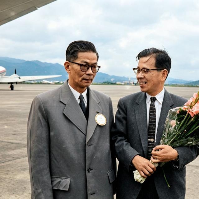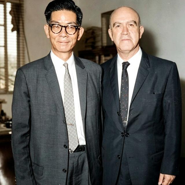 咱们目下看到的这一张老相片,拍摄于上世纪60年代,是连战与父亲连震东的荒野同框留影,父子俩并列而立,五官情感极为相似,基因传承一目了然。